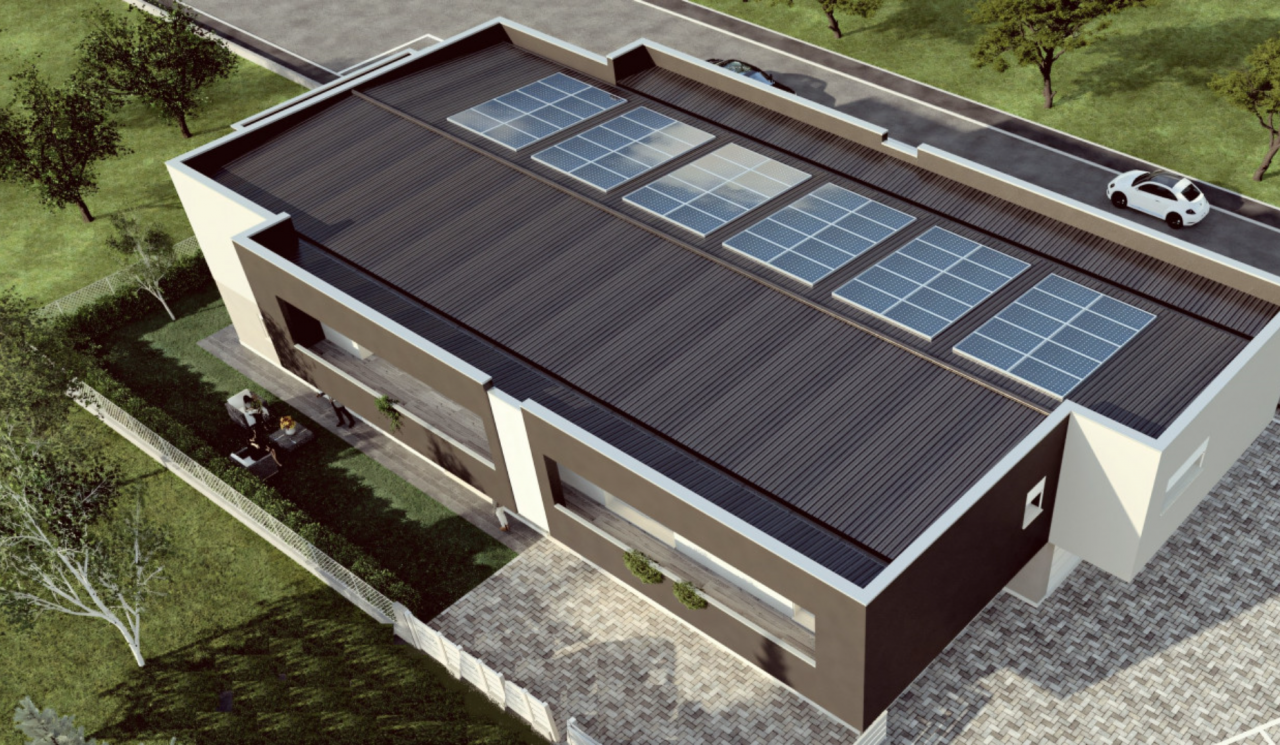 Soluzione completa di di riscaldamento a pavimento con pompa di calore, impianto d’aria condizionata, impianto fotovoltaico, VMC, infissi basso emissivi triplo vetro e tapparelle in alluminio motorizzate.