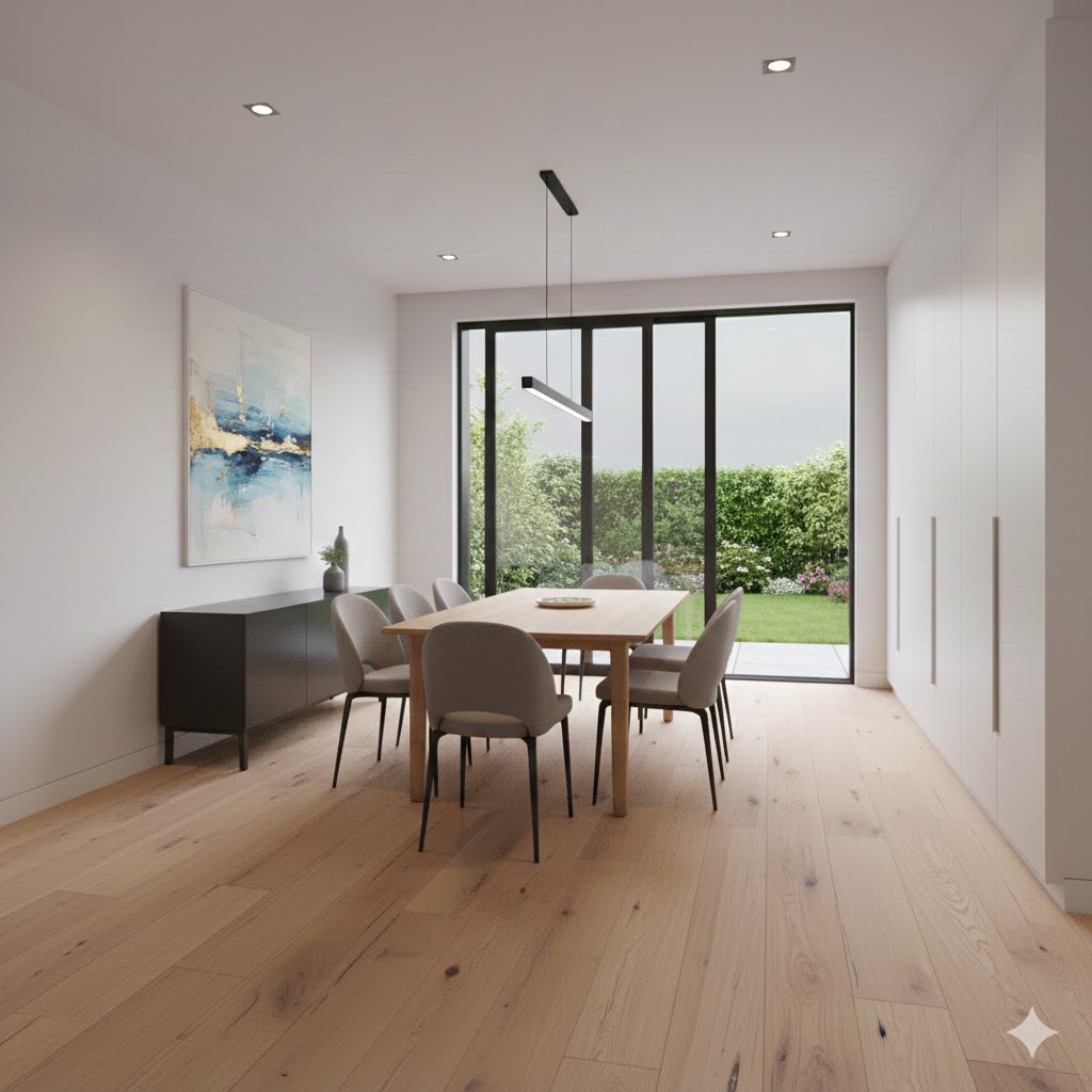 Soluzione completa di riscaldamento a pavimento con pompa di calore, impianto d’aria condizionata, impianto fotovoltaico, VMC, infissi basso emissivi triplo vetro e tapparelle in alluminio motorizzate.